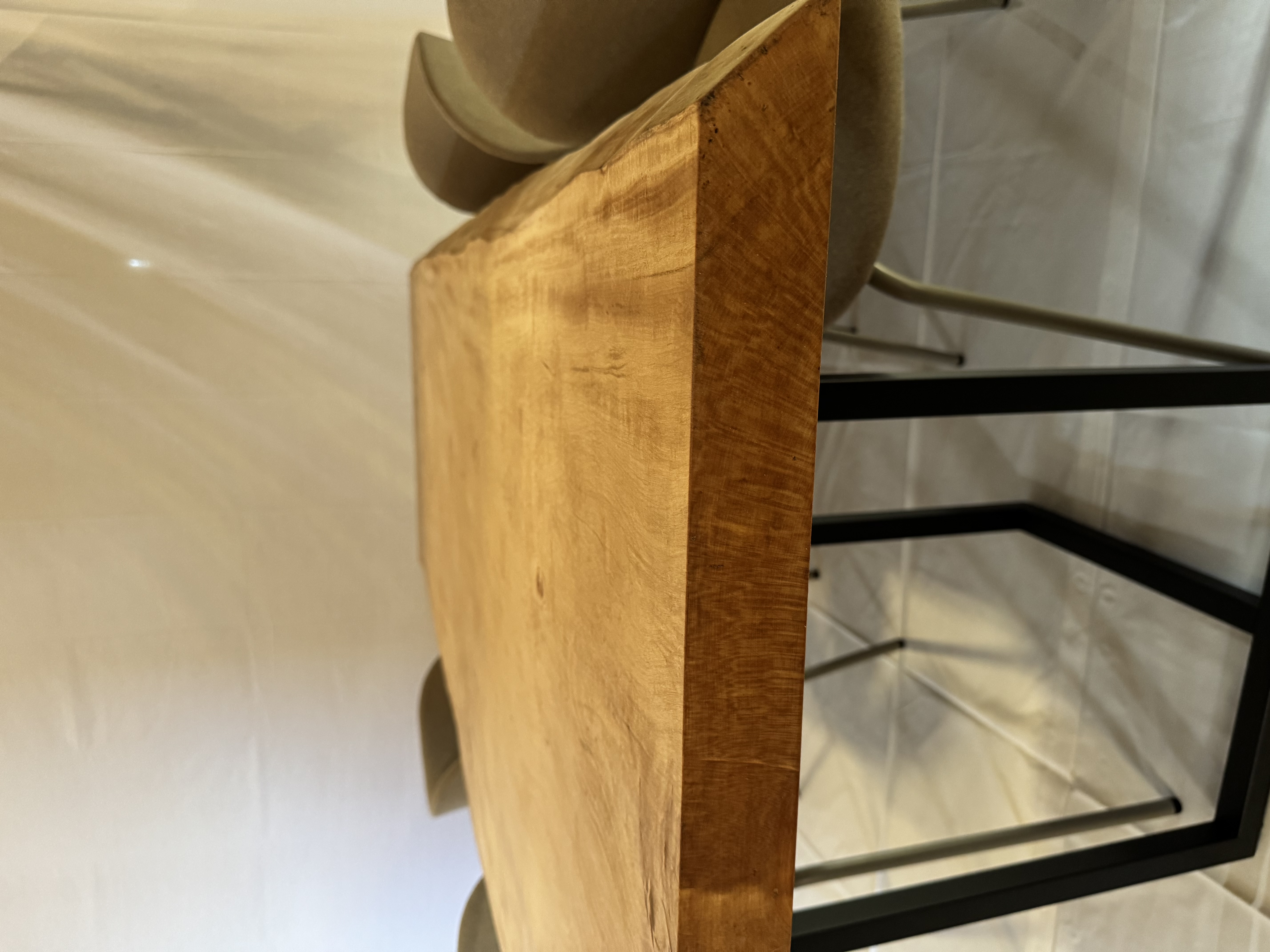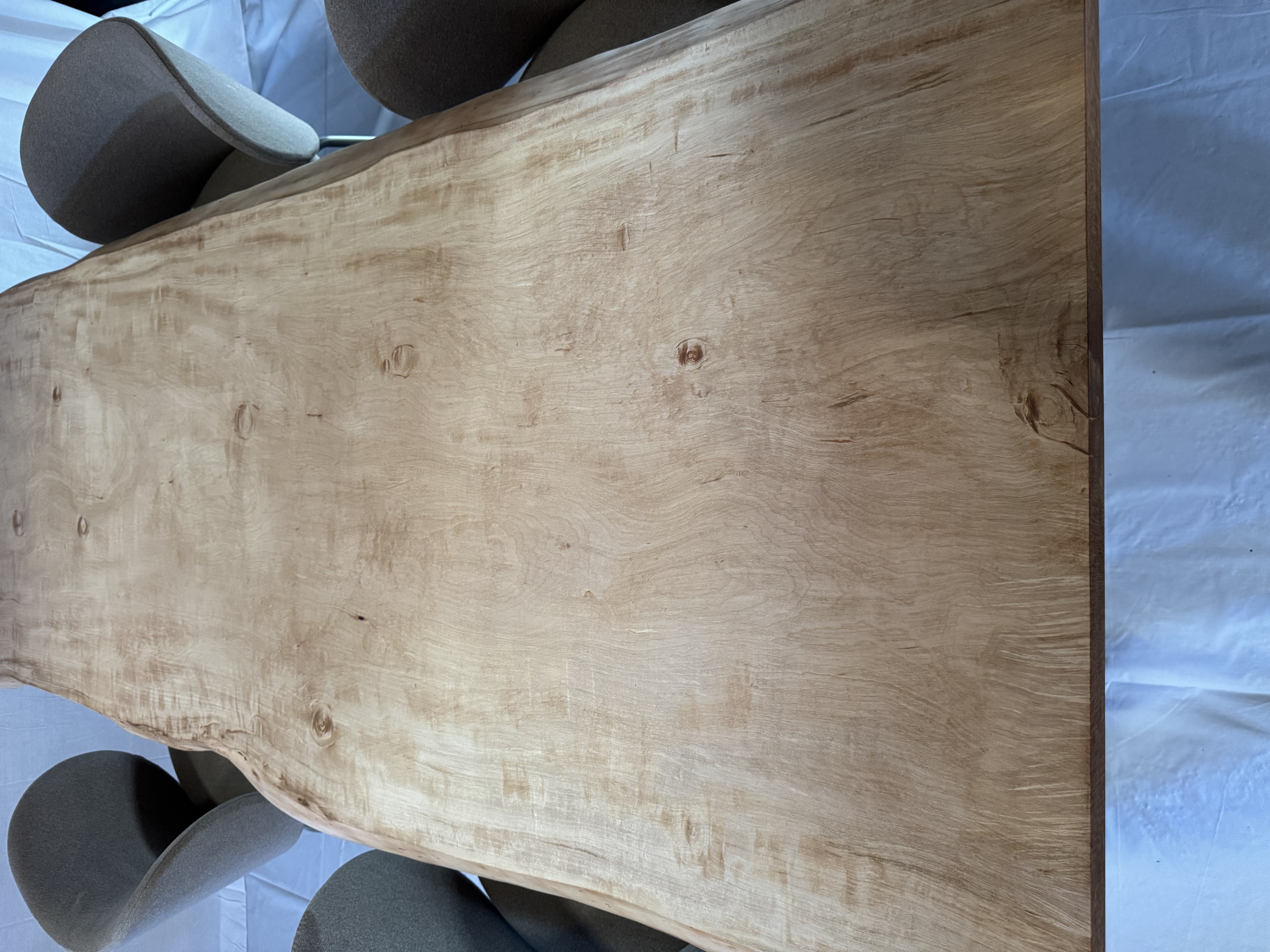 絹のような光沢と、波打つような木目が美しい国産栃の一枚板。